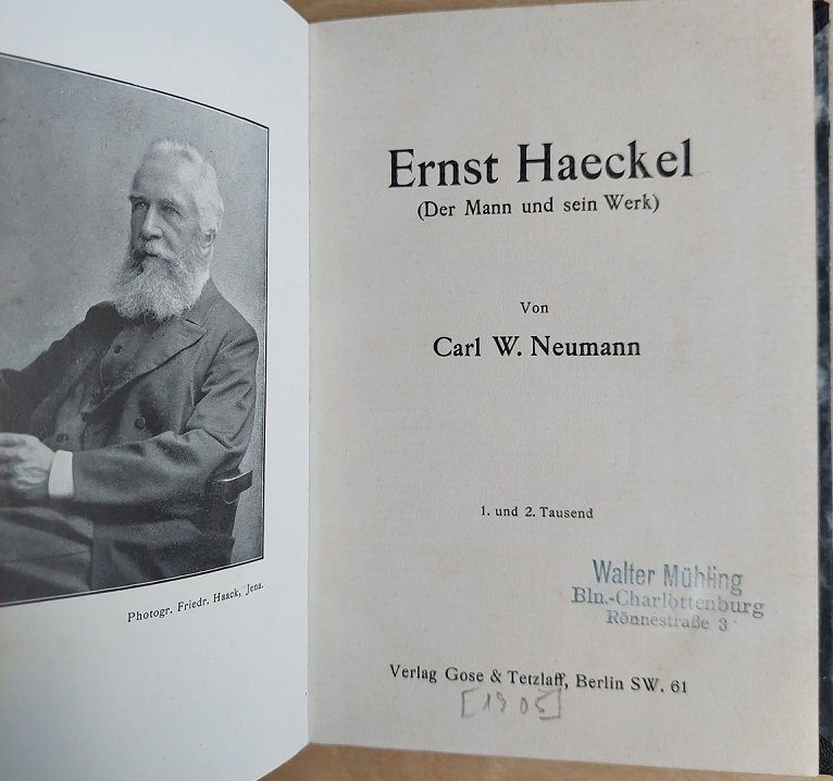 Mit einer photographischen Abbildung Ernst Haeckels als Frontispiz (Photographie: Friedr. Haack, Jena).