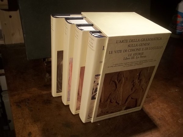 FONDAZIONE LORENZO VALLA / ARNALDO MONDADORI 1990 CARTONATO SOVRACCOPERTINA 20 X 13 - 4 VOLUMI CON BAULETTO - CONDIZIONI MOLTO BUONE. SOLO PICCOLO STRAPPETTO AL DORSO DI 2 VOLUMI.