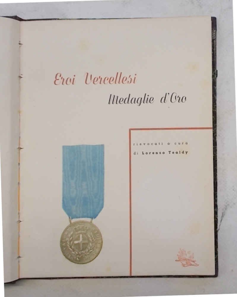 In 8° (cm. 22 x 17); pagine 87; con 1 tavola ripieg. f.t. e tutte le pagine con decorazioni grafiche e fondo in colore; stampato su carta forte; mezza tela dell'epoca e leggera cartonatura originale figurata a colori conservata all'interno. VG. ** Edito in occasione dell'apertura del Sacrario degli Eroi nella cripta del S.Andrea.