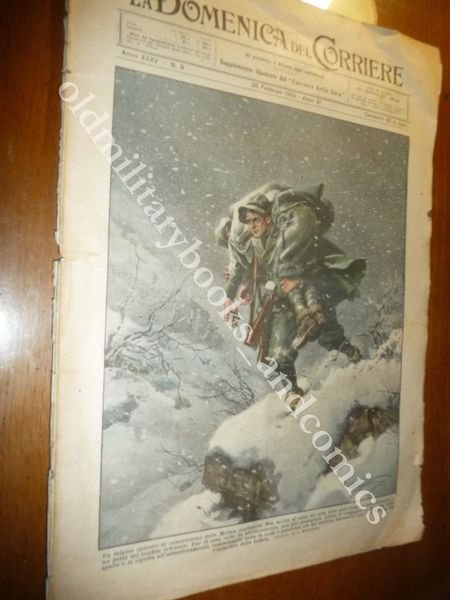 DESCRIZIONE: Domenica del Corriere 26 febbraio 1933 n. 9 COPERTINA: Eroismo di una guardia della Milizia Confinaria, si carica sulle spalle compagno colpito da assideramento. RETRO: Volo sulle Alpi con un veicolo senza motore. CONDIZIONI DELL'OGGETTO: Buone, strappetti alla costola con sovraccoperta azzurrina. PESO/WEIGHT: 46 g without package