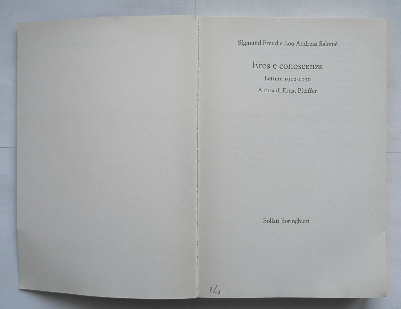 EROS E CONOSCENZA. Sigmund Freud e Lou Andreas Salomé. Lettere 1912-1936. A cura di Ernst Pfeiffer.