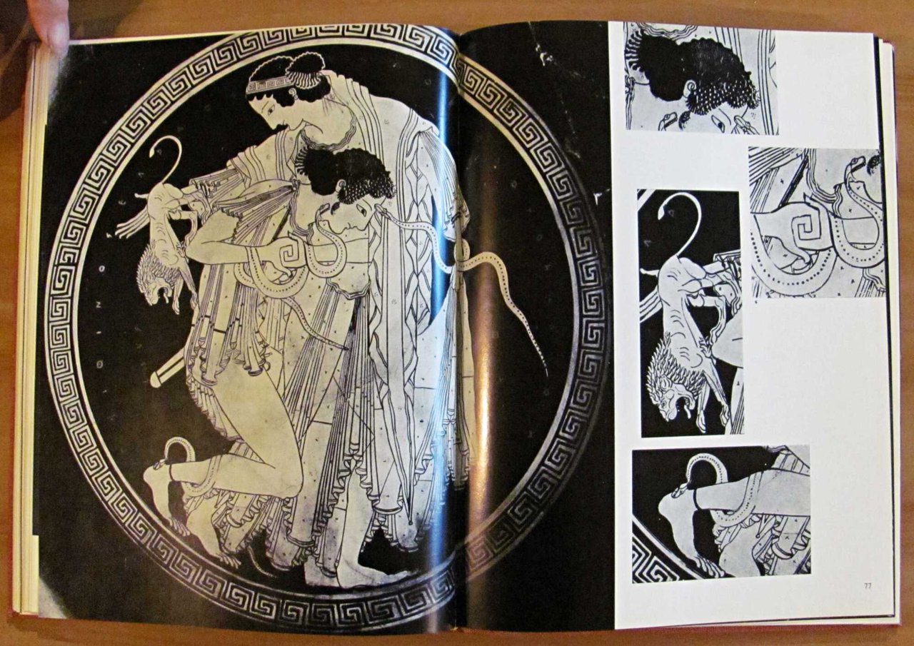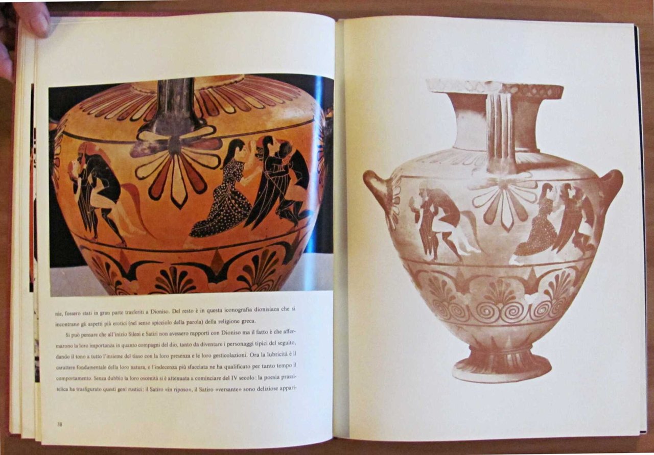 Saggio sulle rappresentazioni erotiche nell'arte greca. Moltissime illustrazioni in b/n e a colori n.t., di cui molte a piena pagina e alcune applicate. Le Edizioni Nagel - Ginevra, I edizione 1963. Tela editoriale con titoli in oro al piatto e al dorso. Privo di sovraccoperta. 25,5x34; pp.167. Stato di Nuovo. , Perfetto (Mint)