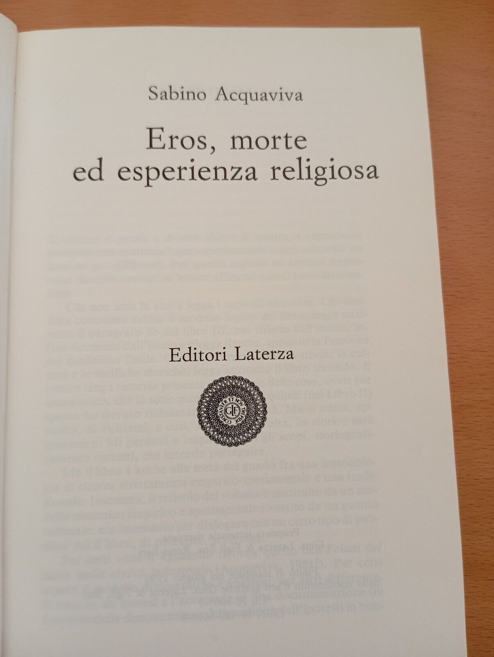Eros, morte ed esperienza religiosa, Sabino Acquaviva, Laterza, 1990