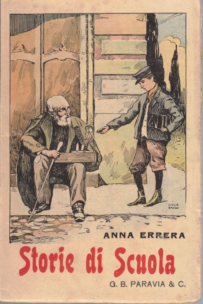 Anna Errera, Storie di scuola, disegni di Giulio Brugo, G. B. Paravia e C., Torino s.d. (1926?), settima rist., pp. 85, ill. b.n., testatine ill. b.n., 8 c. di tavv. f.t. ill. col., cm 21, br. ed. Minime fioriture, lievissima brunitura della carta, per il resto ottimo. In gran parte intonso.