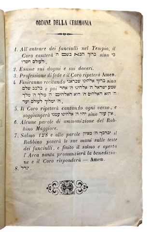 Esame e Professione di Fede per la celebrazione della Maggiorità Religiosa ad uso della Gioventù Israelitica di sesso maschile.