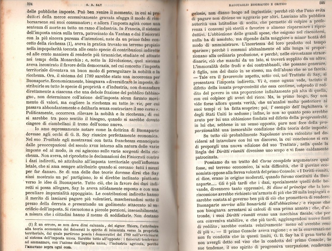 ESAME STORICO - CRITICO DI ECONOMISTI E DOTTRINE ECONOMICHE del secolo XVIII e prima metà del XIX. 2 volumi rilegati insieme. raccolta delle prefazioni dettate dal professore Francesco Ferrara. Volume Primo parte prima e parte seconda. Torino, Unione tipografico Editrice (UTET), 1889 . VII, 692 + 719 pagine. Copertina non editoriale in tutta tela. Stato di conservazione: molto buono (pagine normalmente ingiallite, firma e timbro privato di appartenenza) Libro antico saggistica economia