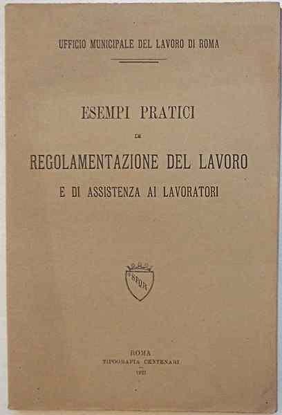 In 8° (cm. 22,5 x 15); pagg. 226; leggera cartonatura originale. VG. ** Pubblicato dall'Ufficio Municipale del Lavoro di Roma.