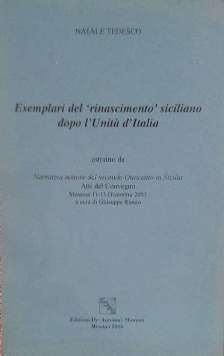 ESEMPLARI DEL "RINASCIMENTO"SICILIANO DOPO L'UNITA' D'ITALIA - ESTRATTO DA "NARRATIVA MINORE DEL SECONDO OTTOCENTO IN SICILIA"