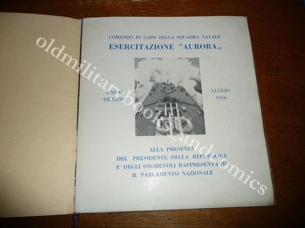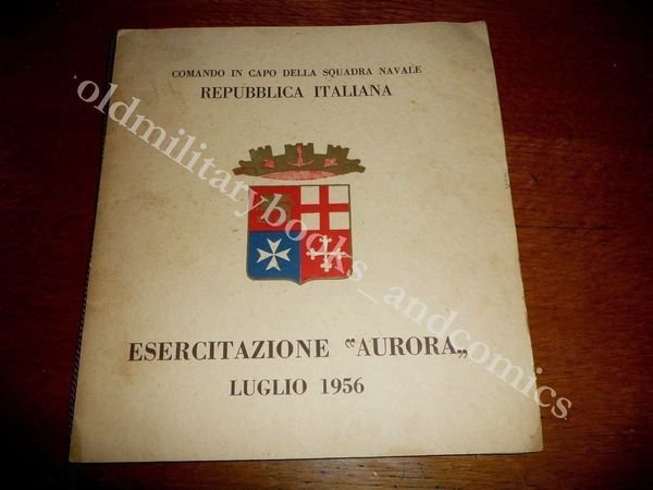 TITOLO: ESERCITAZIONE AURORA LUGLIO 1956 - COMANDO IN CAPO DELLA SQUADRA NAVALE REPUBBLICA ITALIANA AUTORE: AA.VV. DESCRIZIONE: Volumetto di 12 pp. che descrive la citata esercitazione, con tutti i mezzi partecipanti navi, aerei, sommegibili, i vari Comandanti, grafico delle Rotte le varie fasi dell'esercitazione etc. CONDIZIONI DELL'OGGETTO: Perfette. PESO/WEIGHT: 100 g without package