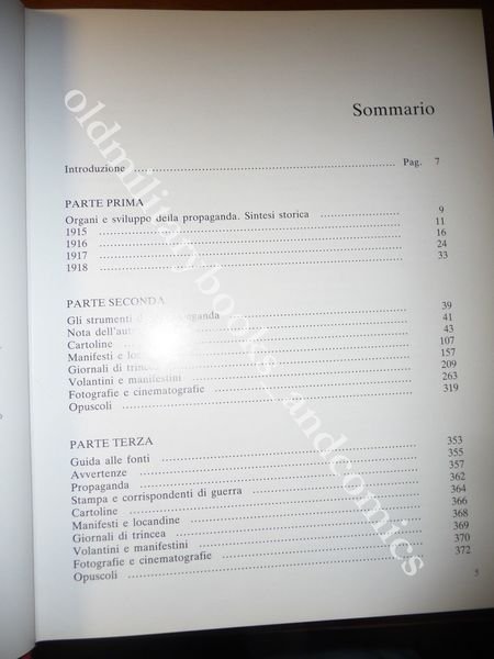 DESCRIZIONE: Stato Maggiore dell'Esercito Ufficio Storico Roma 1989, br. ed. tutta tela con socracc. ill. col. pp. 372 in 4°, ill. in quasi ogni pag. Bel volume che illustra la propaganda di guerra dell'Esercito Italiano nella WWI. Ricchissima veste iconografica. Mai piu' ristampato?. CONDIZIONI: Ottime, piccola scritta alla prima pag. bianca. PESO / WEIGHT: 2183 gr. without package
