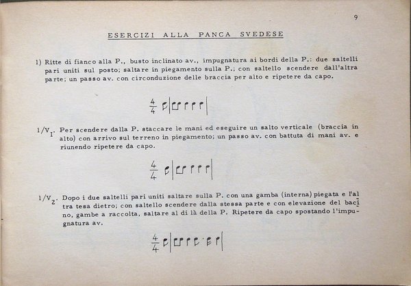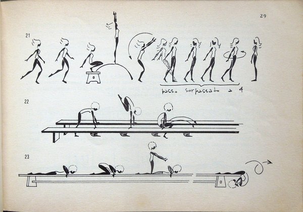 Esercizi alla panca svedese (Disegni di Elda Rovaro). Convegno di Chiavari, Marzo 1976