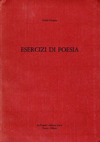Esercizi di poesia, prima edizione dicembre 1969, pp. 136, formato 18,5 x 26.<BR>Copertina morbida di colore marrone con titoli in nero al piatto anteriore e sul dorso.All'interno 5 incisioni di Leonardo Castellani. Edizione stampata su carta Ventura in 292 esemplari numerati e firmati dall'autore. Nostra copia n. 144.In prima pagina presente dedica dell'autore a Maria Luigia Guaita, moglie dell'editore Enrico Vallecchi.<BR>Piccolo strappo tra il piatto anteriore e il dorso. Nel complesso ottime condizioni.