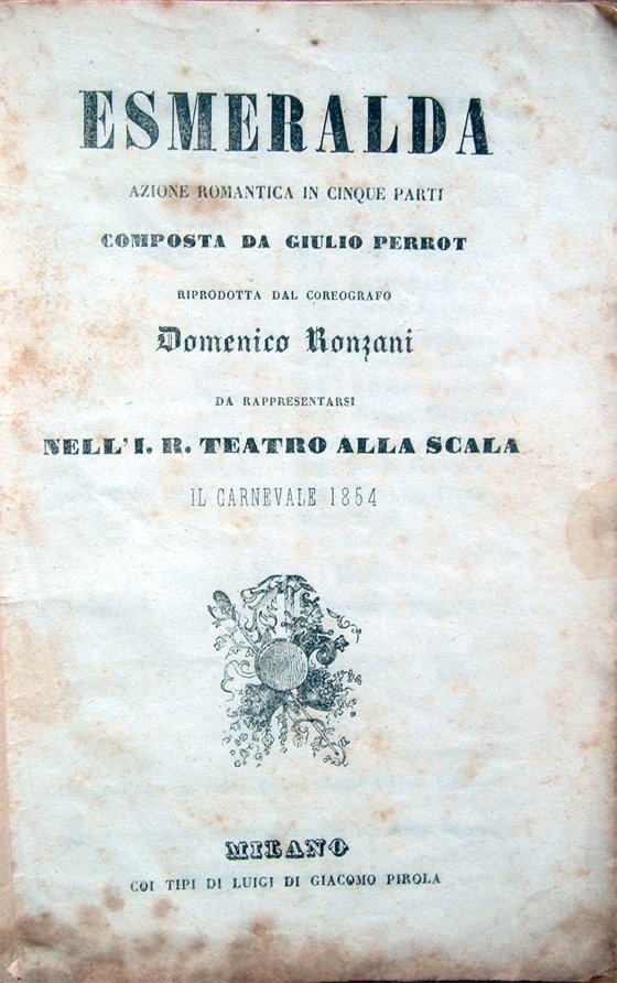 Esmeralda. Azione romantica in cinque parti composta da Giulio Perrot riprodotta dal coreografo Domenico Ronzani da rappresentarsi nell'I. R. Teatro alla Scala il Carnevale 1854