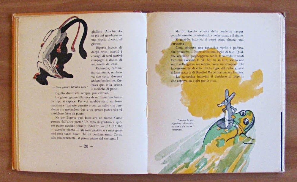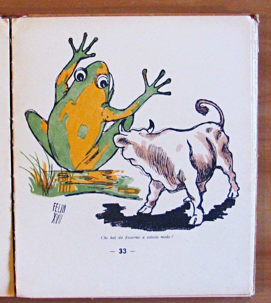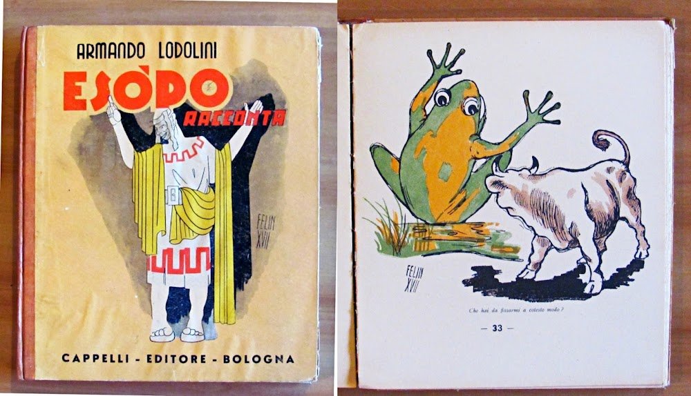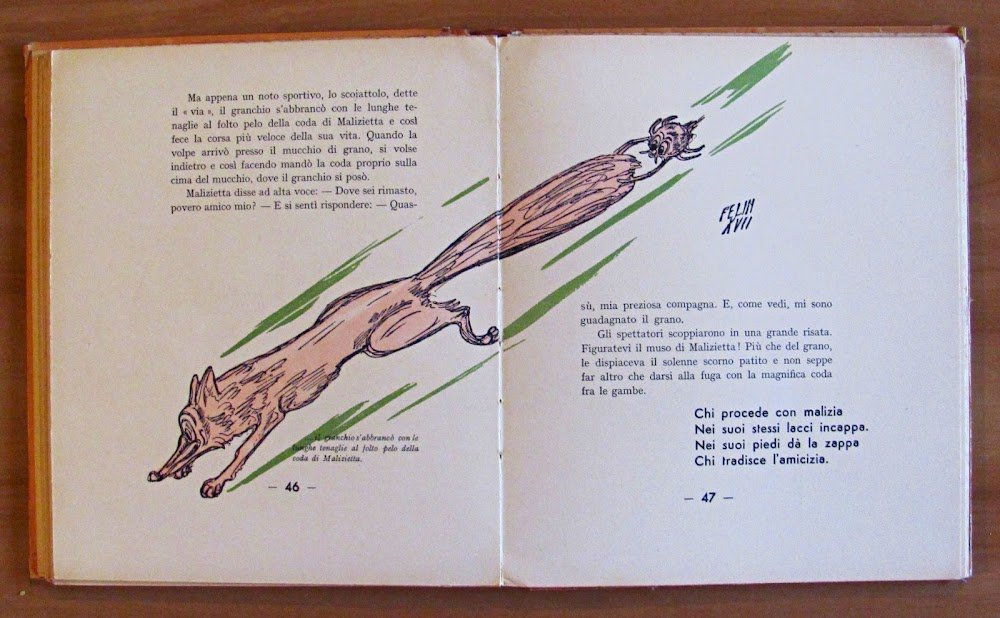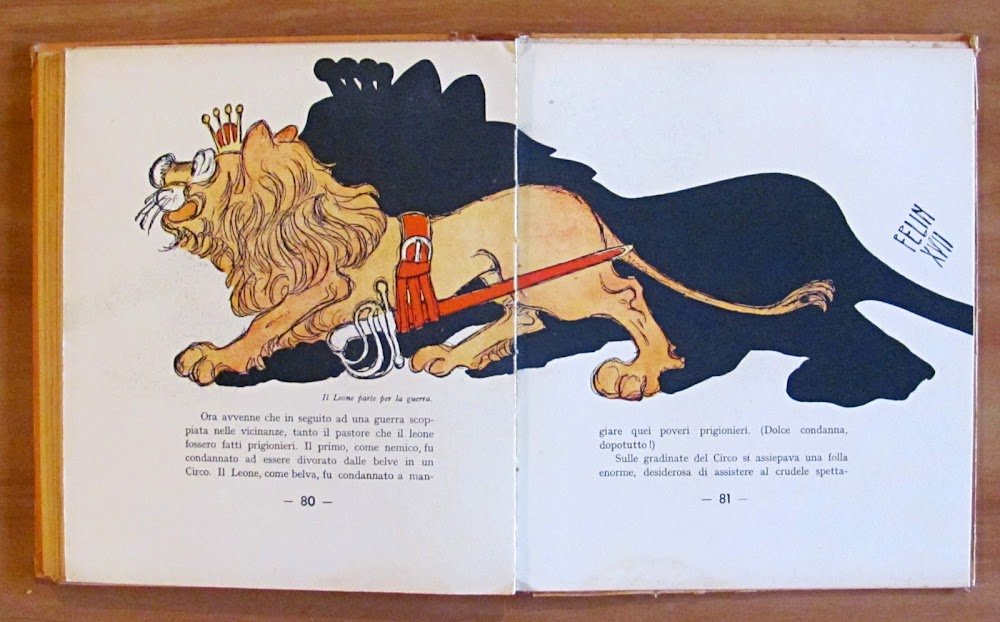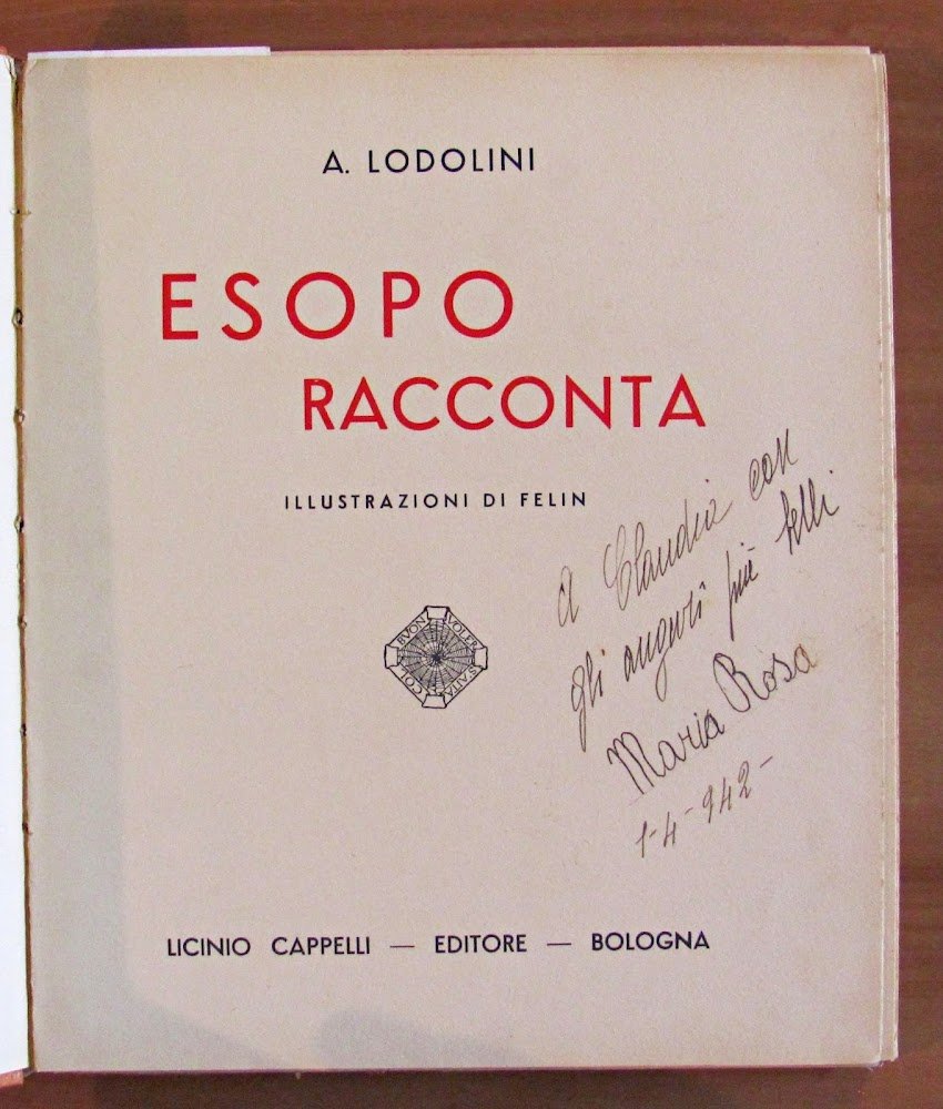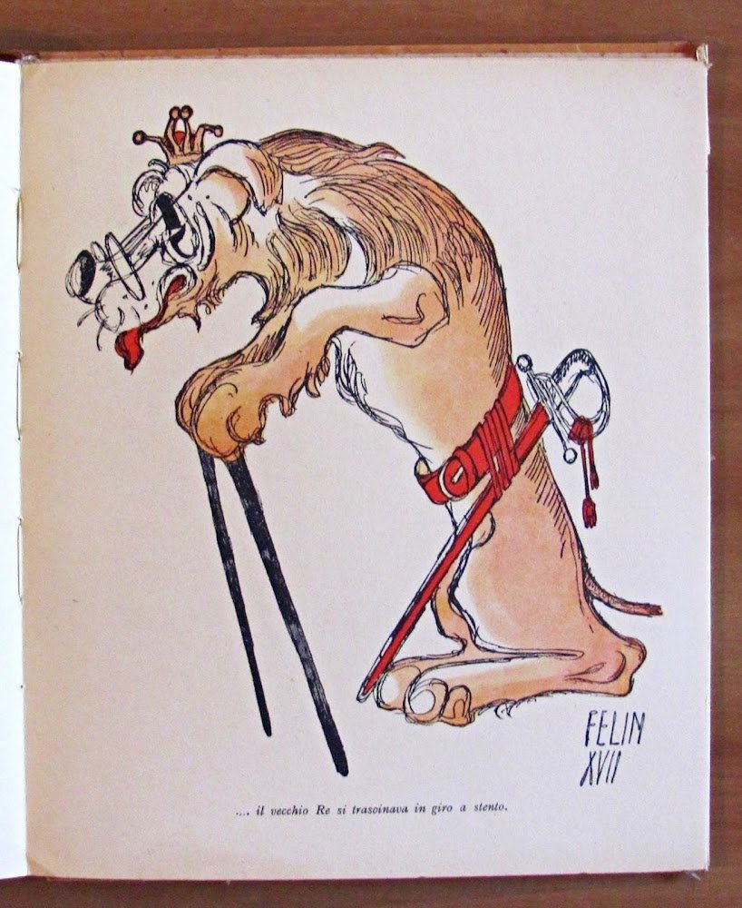 Molte illustrazioni a colori n.t., di cui 7 a piena pagina, di Felin. Editore Licinio Cappelli - Bologna, I edizione 1939. Copia Numerata, nostra N.2507. Cartonato editoriale con dorso in tela originale con scoloritura del tempo ai titoli. Leggera ondulazione alle copertine con lievi imperfezioni ai margini delle stesse, dedica del tempo al frontespizio e lieve allentamento alla cerniera interna del dorso. 21x24,5; pp.90. BUONISSIMO STATO , Molto buono (Very Good)