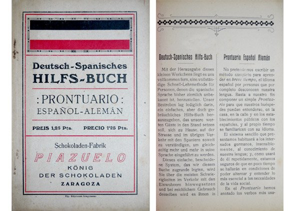 Zaragoza, Tip. Ediciones Aragonesas, s.a. (hacia 1928). 4to.; 32 pp., con numerosos anuncios publicitarios escritos en los dos idiomas. Cubiertas originales.