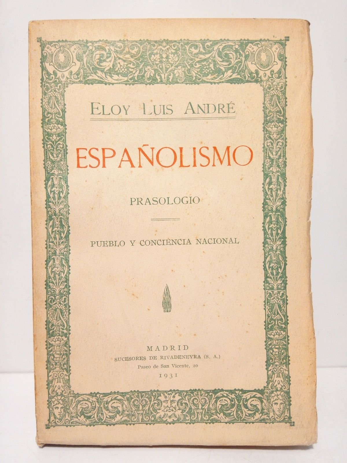 [PRIMERA EDICION].- Madrid: Sucs. de Rivadeneyra, 1931.- 228 p., [6 h.]; 8º (19 x12,7 cm); intonso, conservando todas sus barbas; Rústica Ed.* Excelente estado. IDEA DE ESPAÑA, DE LOS ESPAÑOLES Y DE LA CULTURA ESPAÑOLA EN GENERAL