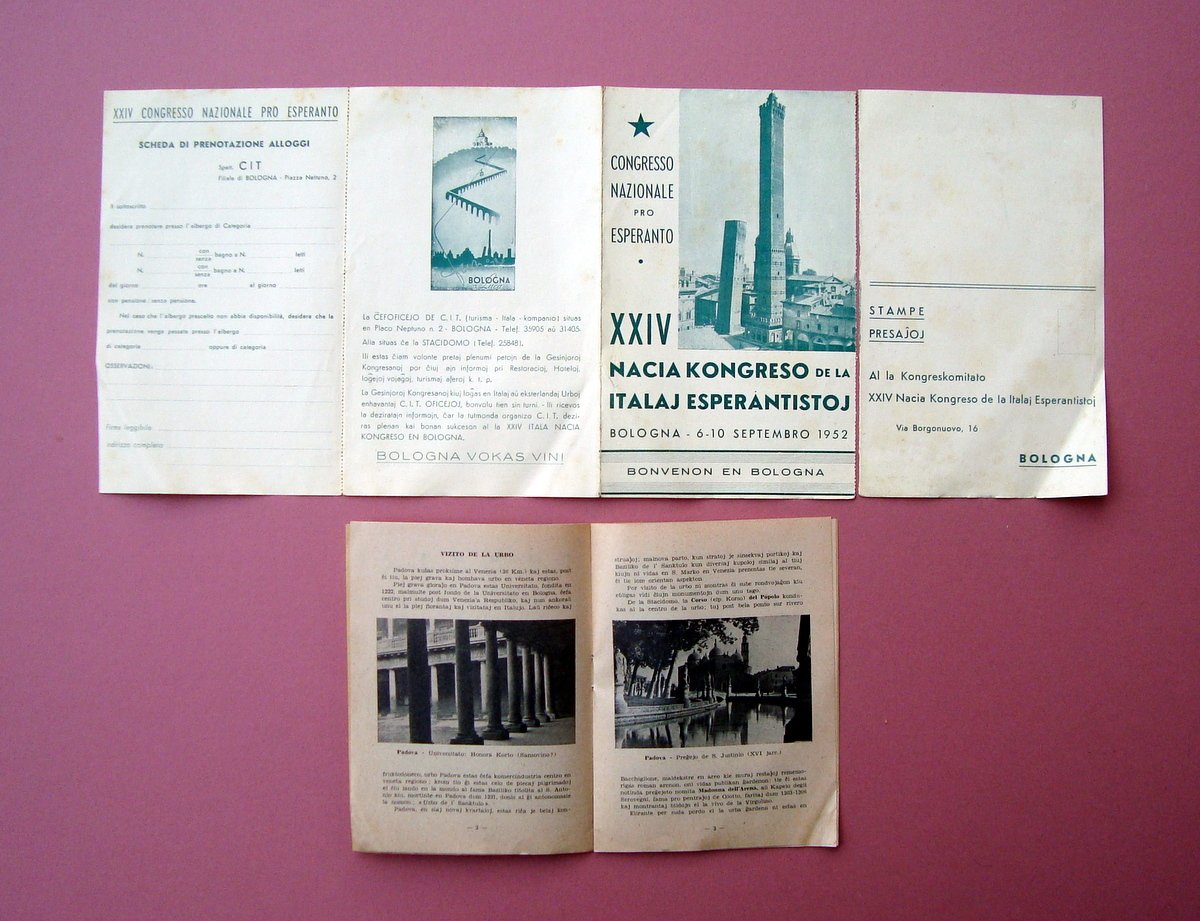Esperanto due brossure XXIV Congresso Nazionale Bologna 1952 Padova Fiere guida