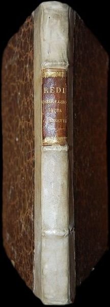 In 4° (24×17 cm); (4), 236 pp. e 39 c. di tav. fuori testo, alcune più volte ripiegate tutte poste alla fine del volume. Legatura settecentesca in piena pergamena rigida con i piatti foderati con carta marmorizzata agli inizi dellottocento. Dorso a tre nervi. Titolo in oro su fascetta in pelle chiara al dorso realizzato in epoca ottocentesca. Fregio editoriale inciso al frontespizio con motto Il più bel Fiore ne coglie. Le ultime due carte presentano unantica integrazione al margine bianco inferiore, del tutto ininfluente, realizzato solo per far coincidere il margine inferiore di queste tavole a quello delle altre. Poche macchioline di foxing e leggerissime bruniture, in genere nel margine esterno bianco di alcune carte ma nel complesso esemplare in buone-ottime condizioni di conservazione. Esemplare completissimo. Presente anche la tavola 29 spesso assente. Due incisioni nel testo rappresentanti insetti. Terza edizione, in verità seconda in italiano (dopo unedizione uscita le 1668 con numero minore di tavole, uscì una seconda edizione in latino), preferita alle altre, in quanto è quella con il maggior numero di tavole. Una delle opere più celebri del grande medico, naturalista e letterato italiano, Francesco Redi (Arezzo, 18 febbraio 1626 Pisa, 1º marzo 1697). Considerato il fondatore della biologia sperimentale e uno dei padri della parassitologia moderna. I suoi studi, fra i quali quelli intorno alla generazione spontanea e al veleno delle vipere, rivestono particolare importanza nella storia della scienza moderna, per la loro opera di demolizione di alcune teorie di stampo aristotelico a favore di unattività sperimentale e per la loro applicazione in campo medico di una pratica terapeutica di impostazione ippocratica, costruita su regole di prevenzione e sulluso di rimedi esclusivamente naturali e su precetti di vita equilibrata Particolarmente importanti sono le sue Esperienze Intorno alla Generazione deglInsetti del 1668, nato da una lettera a Carlo Dati, in cui confutò la teoria della generazione spontanea, allora generalmente accettata, con un approfondito studio sperimentale della riproduzione delle mosche. Lopera contribuì in modo definitivo ad screditare il dogma aristotelico sulla generazione spontanea degli insetti. I suoi esperimenti e le sue osservazioni microscopiche vennero poi in seguito riprese, sviluppate e concluse da Pasteur e da Spallanzani. Sotto forma di lettera indirizzata a Carlo Dati, segretario dellAccademia della Crusca e accademico del Cimento, lopera che condurrà Redi alla notorietà espone le conclusioni raggiunte a seguito di molte esperienze fatte di fresco [ ] intorno al nascimento di que viventi che infino al dì doggi da tutte le scuole sono stati creduti nascere a caso [corsivo mio] e per propria lor virtude senza paterno seme (Esperienze intorno alla generazione deglinsetti [1668], a cura di W. Bernardi, 1996, p. 75). Redis masterpiece is considered to be Esperienze intorno alla generazione deglInsetti (1668), in which he disproved the doctrine of spontaneous generation in insects, inherited from Aristotle and still considered dogma. The microscope revealed in insects an organization as marvelous as it was unsuspected. Redi prepared and observed the egg-producing apparatus in insects, and he also used the microscope to good advantage in observing the morphological elements characteristic of the eggs of each species (DSB XI, p. 341).D. Pandi, Bibl. delle opere di F. Redi p. 3 Raro; Nissen ZBI, 3319. Prandi n°9 raro; Poggiali I n°552; Michel-Michel VII 16; Nissen I 3319; Krivatsy 9449; British mus. cat. XVII cent. Italian II 726. Manca a Gamba, Razzolini, Choix. Opera rara, completa ed in buone-ottime condizioni di conservazione.