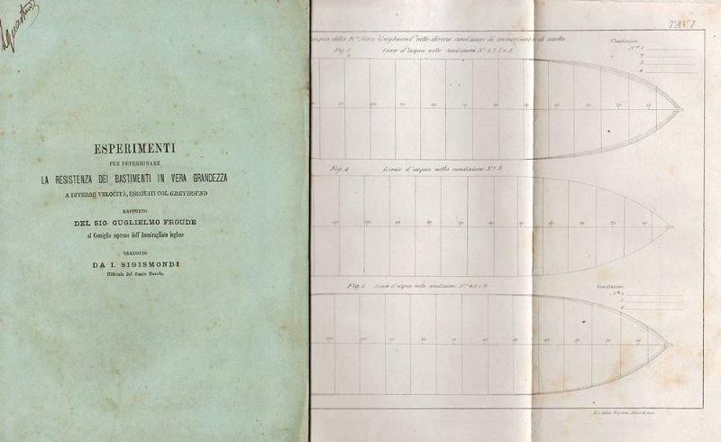 Esperimenti per determinare la resistenza dei bastimenti in vera grandezza a diverse velocità, eseguiti col Greyhound. Traduzione di I. Sigismondi.