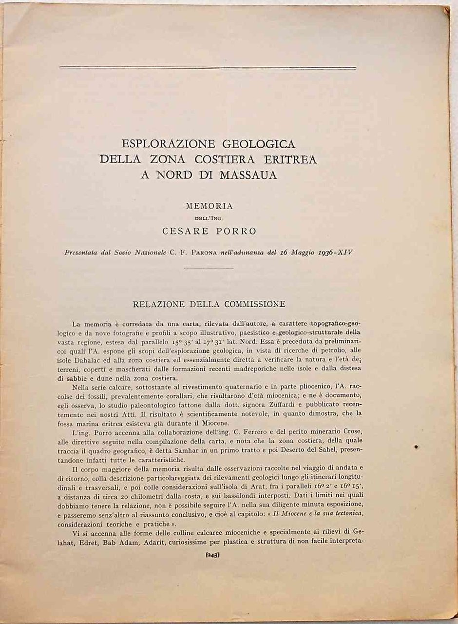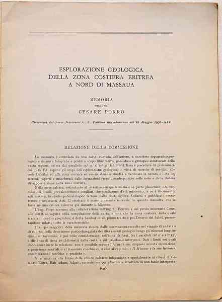 Esplorazione geologica della zona costiera eritrea a nord di Massaua.