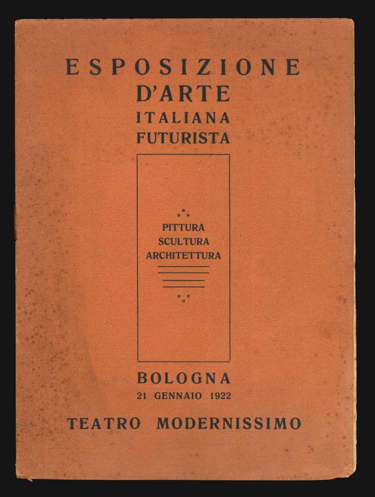 LIBROEdizione originale.Lievissimi segni del tempo al piatto superiore della copertina; per il resto ottimo esemplare a fogli chiusi.Rarissimo catalogo della mostra tenutasi a Bologna il 21 gennaio 1922. In b.n. n.t. ritratti fotografici di Marinetti e Tato (organizzatore della mostra), e una riproduzione di un quadro di Tato. Contiene i testi Che cos'è il futurismo. Nozioni elementari (Marinetti, Settimelli, Carli) e Agli artisti giovani d'Italia! (Boccioni, Carrà, Russolo, Balla e Severini). -- «Importante rassegna transgenerazionale di ricerche futuriste in atto, fra ambiti di pittura, scultura, architettura e visualizzazione poetica, sempre secondo il modello della grande esposizione nazionale del 1919. Vi è largamente rappresentato il lavoro di Tato» (NAF)Nuovi archivi del futurismo I, 1922/1