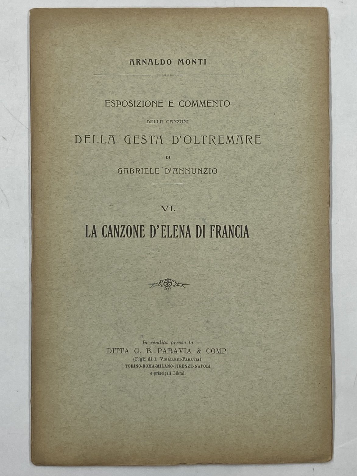 ESPOSIZIONE E COMMENTO DELLE CANZONI DELLA GESTA D’OLTREMARE DI GABRIELE D’ANNUNZIO. VI. LA CANZONE D’ELENA DI FRANCIA.