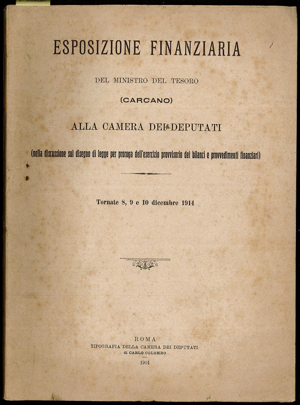 Esposizione finanziaria del Ministro del Tesoro (Carcano) alla Camera dei Deputati