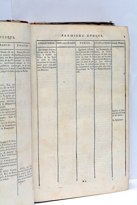 VIII. 495 pages. (mal chiffrées 487). (20,5x14 Cm). Demi-basane de l’époque (très frottée). Charnières fendues. Accidents aux coiffes. Coins émoussés. Page 211 -214 partiellement dereliés. Rousseurs. Interessant tableau historique des événements qui ont concernés les nations européennes écrit par Linguet, à l'époque réfugié à Londres par craint pour sa liberté. Reliure usagée mais l’intérieur est sain.