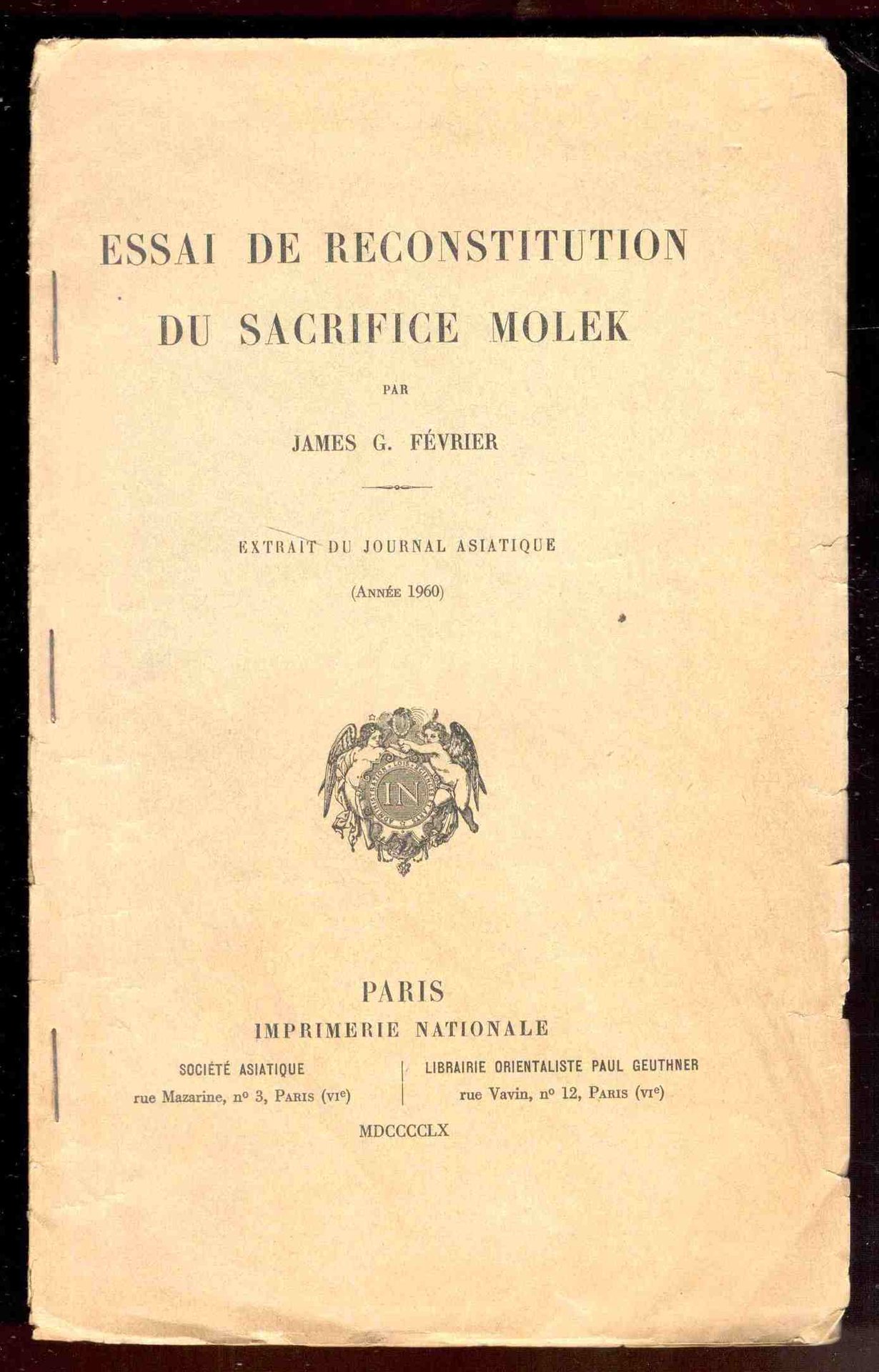 Fascicolo in 8°, pp. da 167 a 187. Brossura editoriale spillata (qualche piccolo strappo). Copia in ordine. Extrait du journal asiatique.