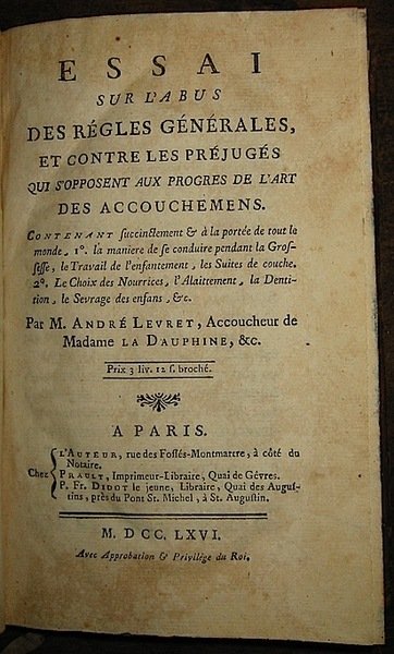 Essai sur l’abus des règles générales et contre les préjugés qui s’opposent aux progres de l’art des accouchemens.