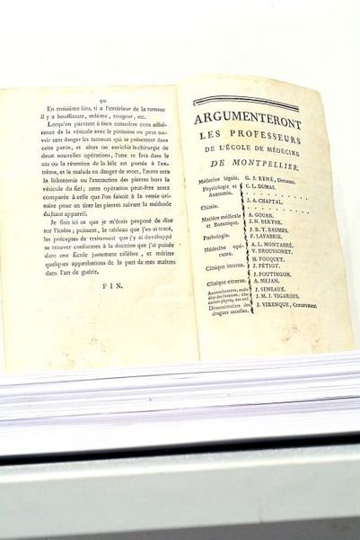 50 pages + 2 pages non chiffrées (12x18cm). Broché. Quelques salissures. Mouillures claires. H. Sicard, natif de Caunes (Aude). Thèse sur la Jaunisse. Remèdes évoqués: Tisanes, Opium, sangsues.