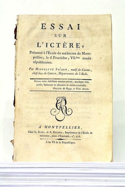 Essai sur l'Ictère, présenté à l'Ecole de Médecine de Montpellier, le 6 Fructidor, VI.ème année républicaine.