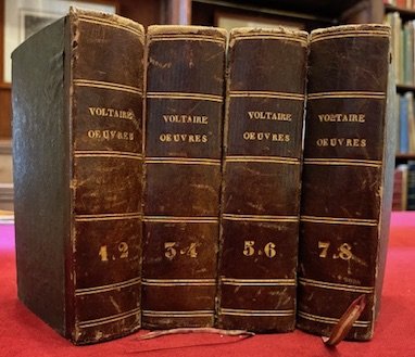 12mo (cm. 13,5), 8 Tomi rilegati in quattro voll.; 2 cc.nn., 242 pp.; 258 pp.; 270 pp.; 2 cc.nn., 276 pp.; 270 pp.; 2 cc.nn., 296 pp.; 2 cc.nn., 274 pp.; 268 pp. Legature coeve in mz. pelle con fili e titoli impressi in oro al ds. (lievi tracce d’usura). Sporadiche fioriture, peraltro esemplare in ottimo stato di conservazione. Provenienza: Collezione Spina, Avezzano (timbretti ex libris).