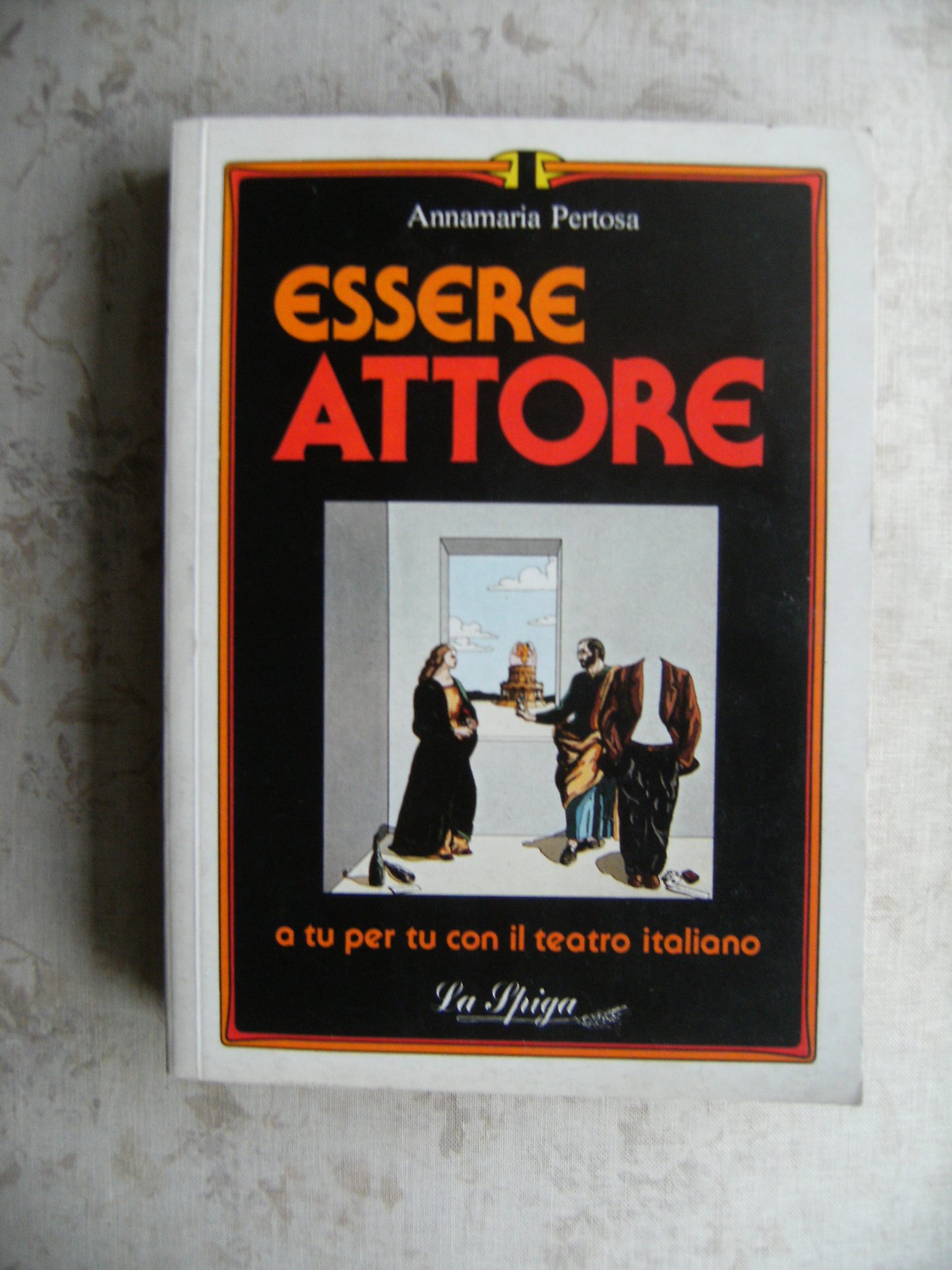 In 8°, pp 246. Brossura illustrata a colori. Oltre cinquanta interviste ai più noti attori del teatro italiano. Prima edizione. Ottimo esemplare.