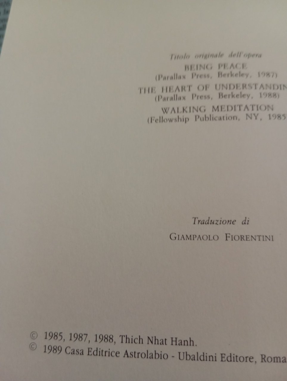 Essere pace, Thich Nhat Hanh, Ubaldini, 1989