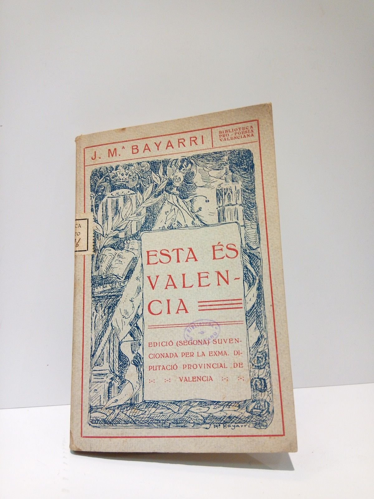 2ª Ed.- Valencia: Diputación Provincial de Valencia, 1923.- 138 p.: Ilustraciones; 8º (18,7 x 12,3 cm); Texto en valenciano; Parcialmente intonso; Cartulina Ed. ilustrada.- (Bibl. Pro-Poesía Valenciana).* Presenta signos de humedad y unos pequeños sellos tampón de la Bibl. V. Alfaro en algunas páginas, aunque no afectan texto. VALENCIA