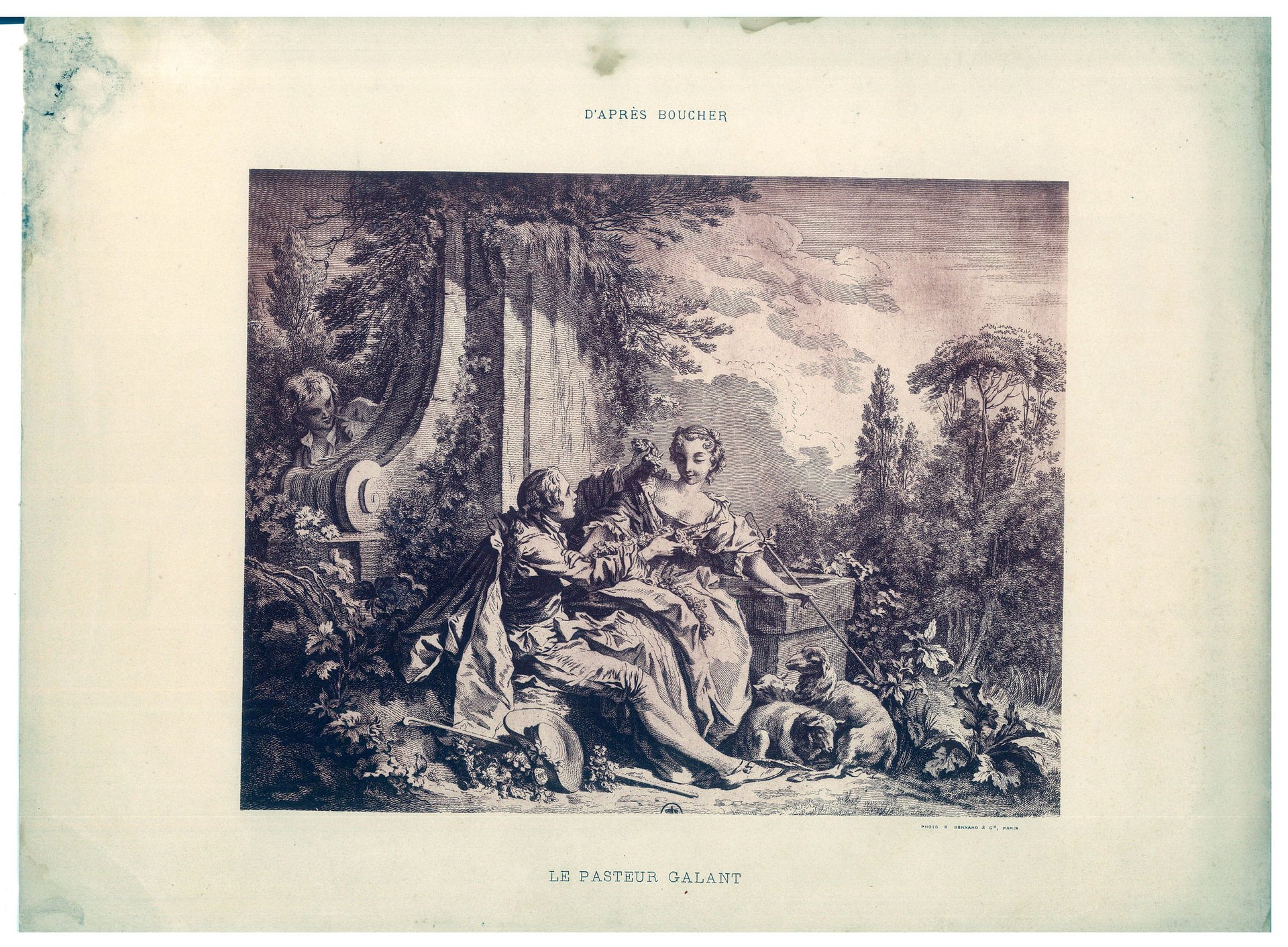 Estampe d'après la peinture "Le pasteur galant" de François Boucher (1703-1770). Par les procédés phototypiques d'E Bernard & Cie.