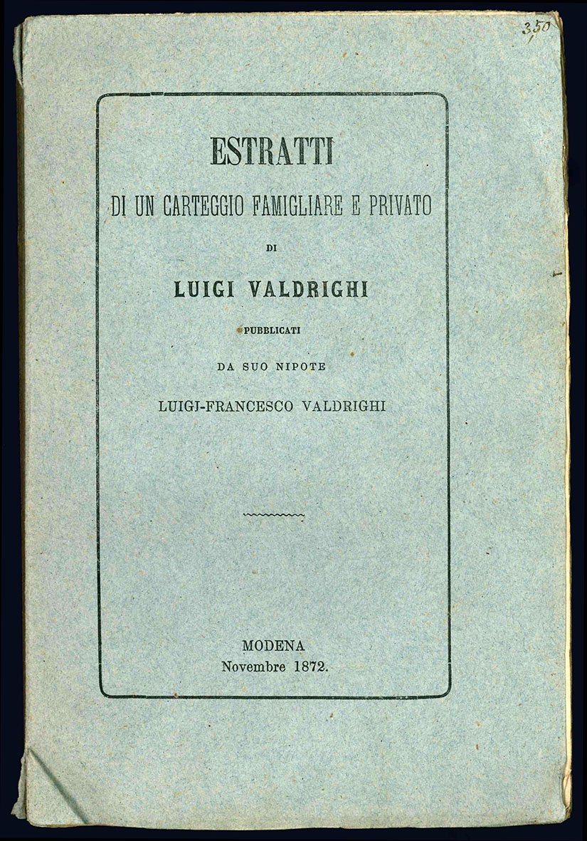 Estratti di un carteggio famigliare e privato ai tempi delle Repubbliche Cisalpina e Italiana e specialmente de' Comizi di Lyon del conte Luigi Valdrighi...Pubblicati con Annotazioni, Documenti, ed Indicazioni Biografiche dal nipote Luigi-Francesco Valdrighi Segretario della Biblioteca Estense.