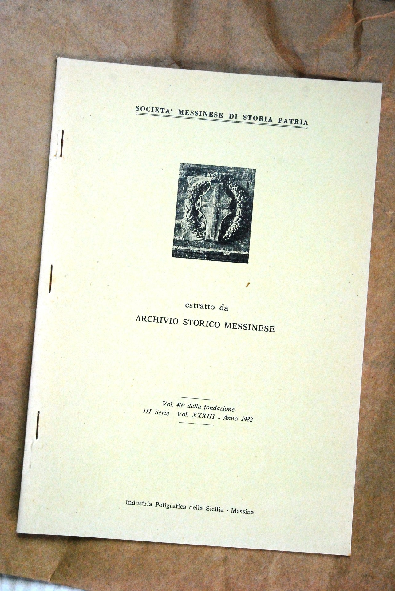 società messinese di storia patria estratto da archivio storico messinese III serie vol. xxxiii. 1982 .