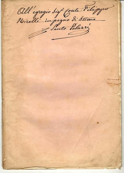In 8°, pp. 27. Brossura muta rosa dell'epoca. Invio autografo dell'autore al Conte Filippo Micelli.