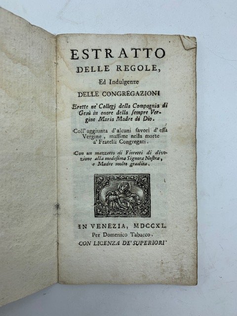 Estratto delle regole ed indulgenze delle congregazioni eretta ne' collegj della Compagnia di Gesu' in onore della sempre Vergine Maria Madre di Dio .