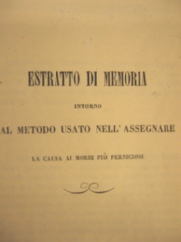 Estratto di memoria intorno al metodo usato nell'assegnare la causa ai morbi più perniciosi.