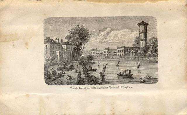 Testo francese. 16°,pg.52. Una xilografia raffigurante "Vue du Lac et Établissement Thermal d'Enghien". Leggere chiazze alla coperta. Codice libreria 43408.
