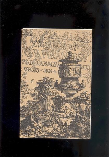 IN 8°, c.39 + c.3 CONLA RIPRODUZIONE DI 17 FILIGRANE. 32 ILLUSTRAZIONI in b/n. RIPRODUCENTI INCISIONI DI PIRANESI. CATALOGO DELLA MOSTRA TENUTASI A LONDRA DA COLNAGHI IN OLD BOND STREET DAL 13 DICEMBRE 1973 AL 4 GENNAIO 1974. OTTIMA CONSERVAZIONE. ID, 6220.
