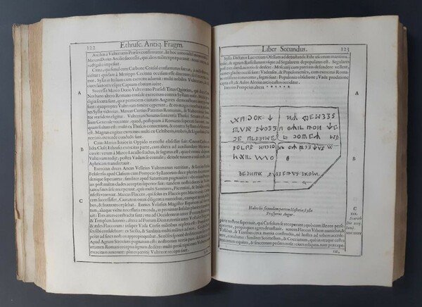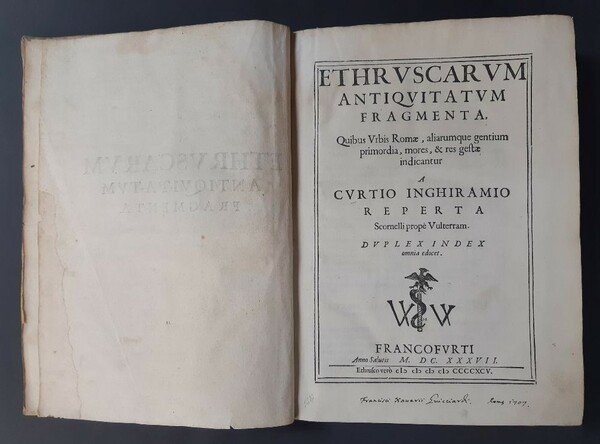 Ethruscarum antiquitatum fragmenta, quibus urbis Romae aliarumque gentium primordia, mores et res gestae indicantur, a Curtio Inghiramio reperta Scornelli prope Vulterram.