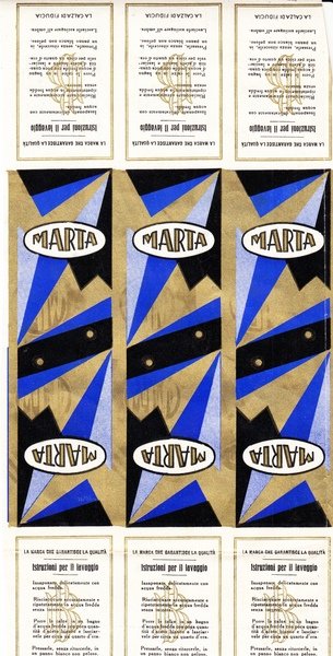 Etichette per calze BB Marta. Etichette futuriste. Futurismo. Disponiamo di vari motivi decorativi e vari colori. Bemberg.