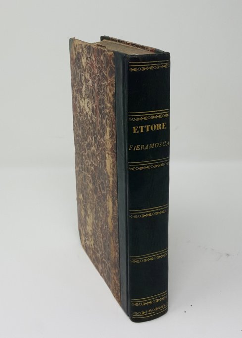 >2 vol. in un tomo in-16 (205x135 mm), pp. (6), 209, (1b.); (6), 238, (2); bella legatura coeva in mezza pelle e angoli, titoli e fregi oro al dorso. Con 8 litografie originali f.t. dello stesso D'Azeglio, ad illustrazione dei fatti salienti del racconto. Edizione originale del primo romanzo storico del D'Azeglio, tra i suoi capolavori. Bell'esemplare, qualche fioritura sparsa, ex-libris al contropiatto anteriore. Parenti 43. Parenti, Rarità III, pp. 188-192: «Edizione originale, assai rara».