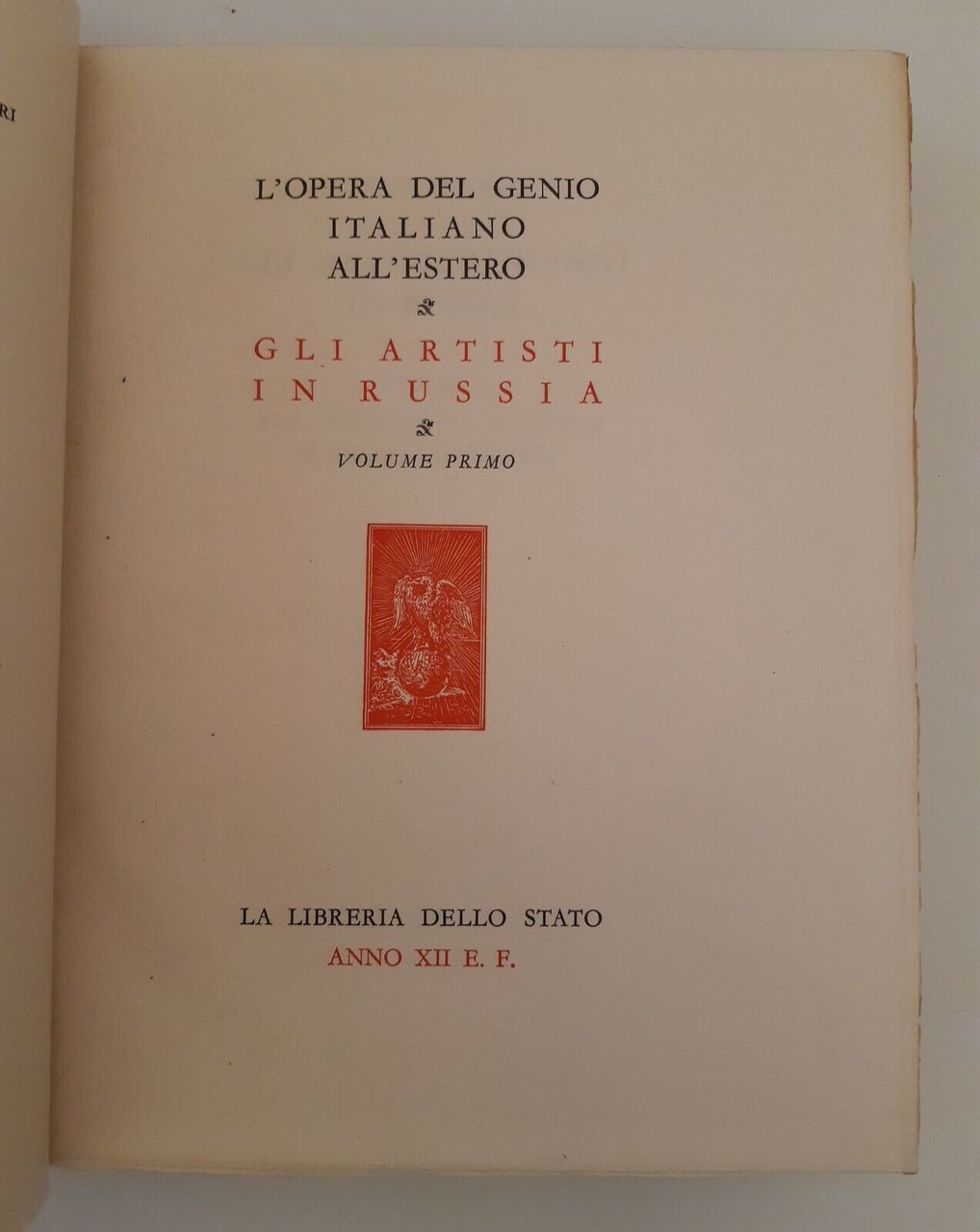 ETTORE LO GATTO GLI ARTISTI IN RUSSIA LA LIBRERIA DELLO STATO 1934 3 VOLUMI