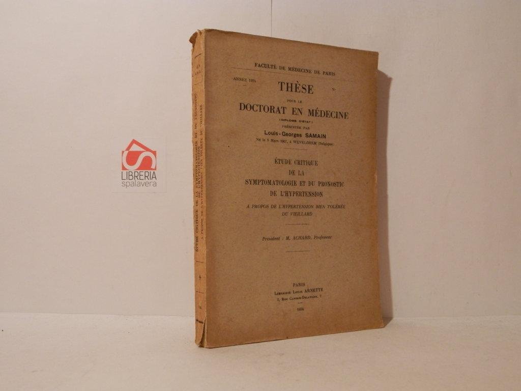8°, 23 cm, pp. 228, brossura editoriale, titolo al piatto e dorso. Tesi di dottorato in medicina. relatore di M. Achard. testo in francese, alcune sottolineature a matita, esemplare molto buono. *** TUTTI I NOSTRI LIBRI SONO VISIBILI PREVIO CONTATTO MAIL O TELEFONO NELLA NUOVA SEDE DI MILANO: LIBRERIA COSMOPOLIS, VIA JOMMELLI, 22. ***