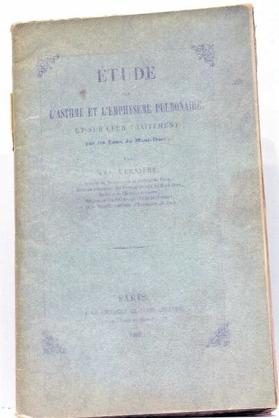 in-8. 71pp. Broché, couverture imprimée. Examen des symptômes des maux de patients en cure par le Médecin-Inspecteur des eaux minérales du Mont-Dore. Vertus des eaux thermales, agissant notamment contre l'asthme et les maladies pulmonaires etc.